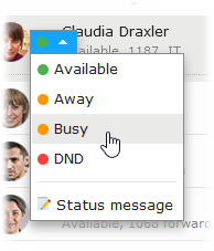 On the right side of the user image is the presence status icon. Clicking on it will reveal a pop-up menu to change the presence status. The following values are available: